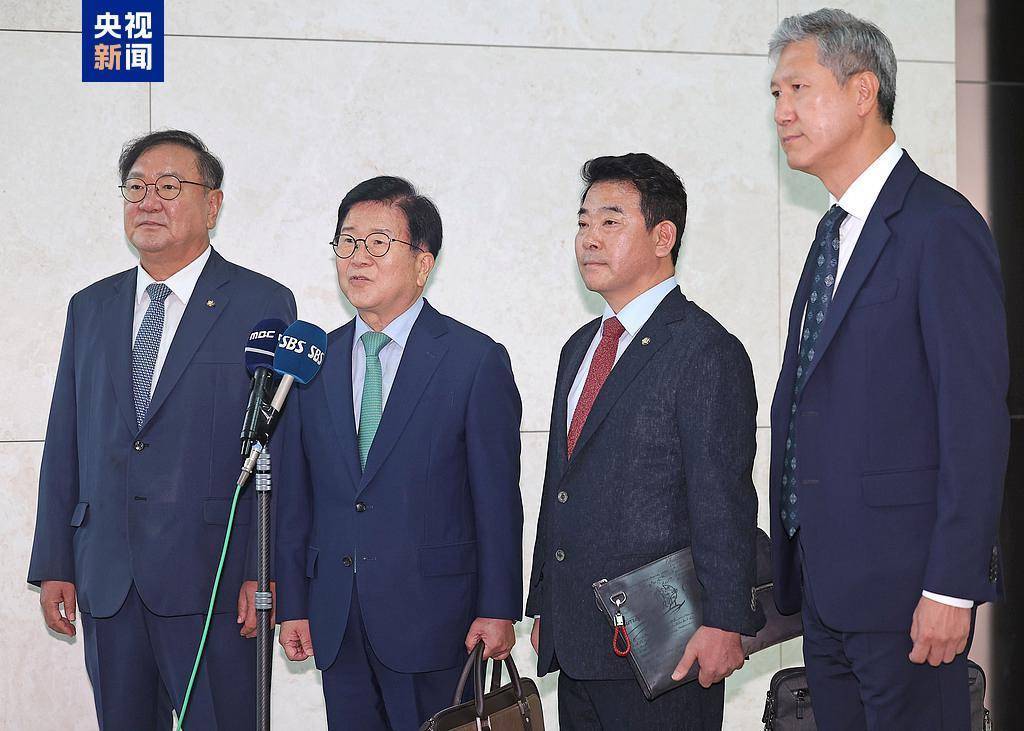 △今年8月,卢载宪(右一)作为韩国总统特使团访华团成员从仁川国际机场启程时接受采访